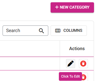 Or update an existing Category by clicking the corresponding pencil icon under the Actions column.