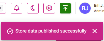 Once complete, the message 'Store data published successfully' appears.