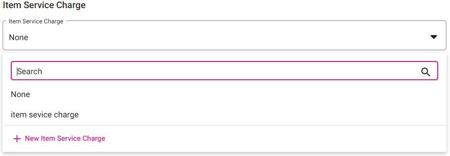 To create a new Item Service Charge, click the + New Item Service Charge button at the bottom of the dropdown. For more information on Item Service Charges, see the Item Service Charge article.