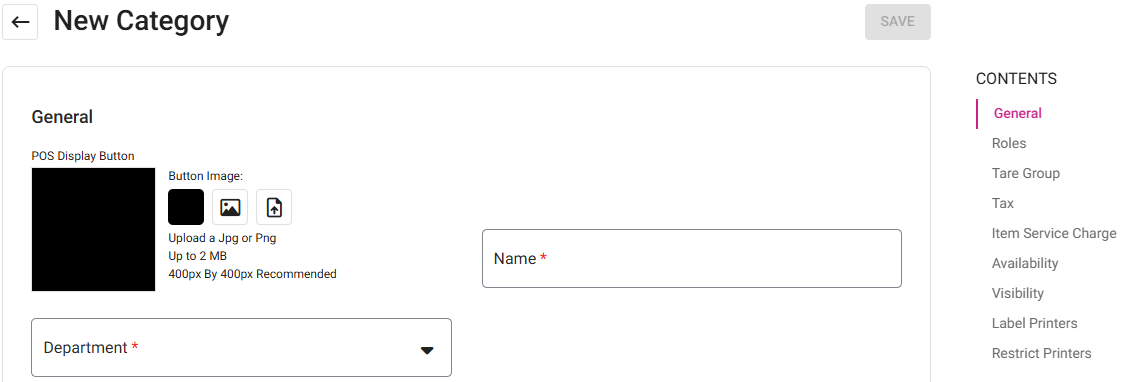 Select the Department from the dropdown (established under Products/Items > Departments). Also, here you can create a new Department by clicking + New Department. For more information on Departments, see the Departments article.