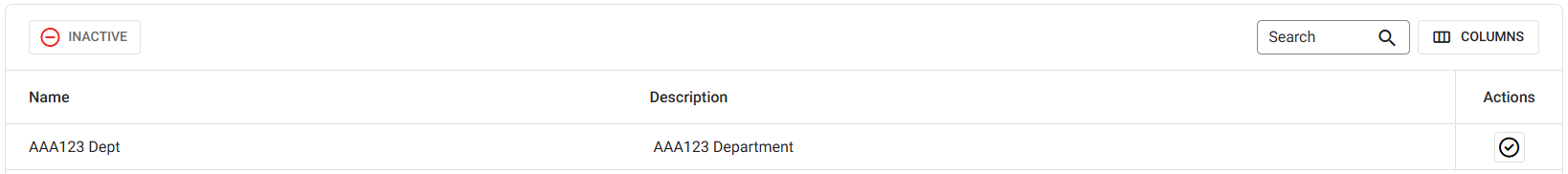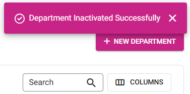 If the Department is not attached to any Category, it will be deleted. You are returned to the main Departments screen, where the Department will no longer appear and the message 'Department Inactivated Successfully' confirmation message appears at the upper-right.