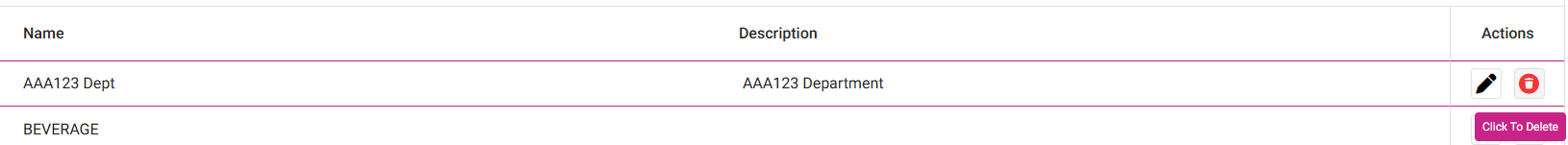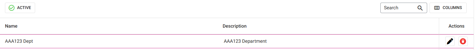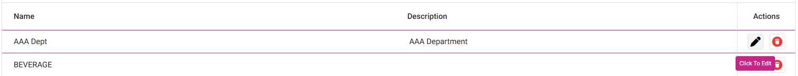 Click the corresponding Edit (diagonal pencil) button of the Department you need to update.