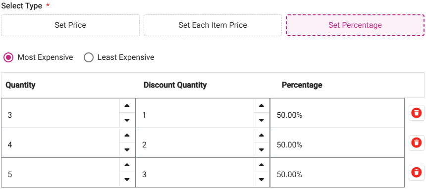 Select whether the Discount will apply to the Most Expensive or Least Expensive item.