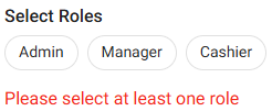 If at least 1 Role isn't selected, the message Please select at least one role appears.