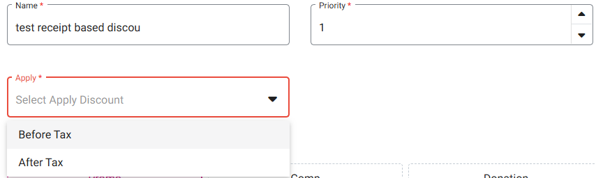 Select how to Apply the Discount (mandatory): Before Tax or After Tax.