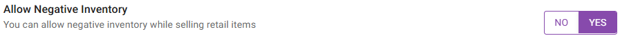 Allow Negative Inventory - If enabled (set to YES), negative inventory will be allowed while selling retail items.