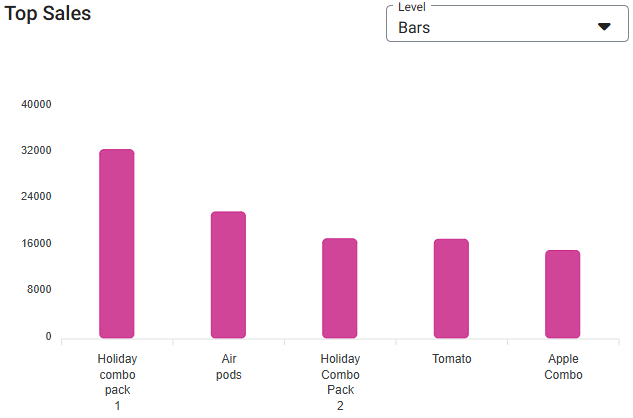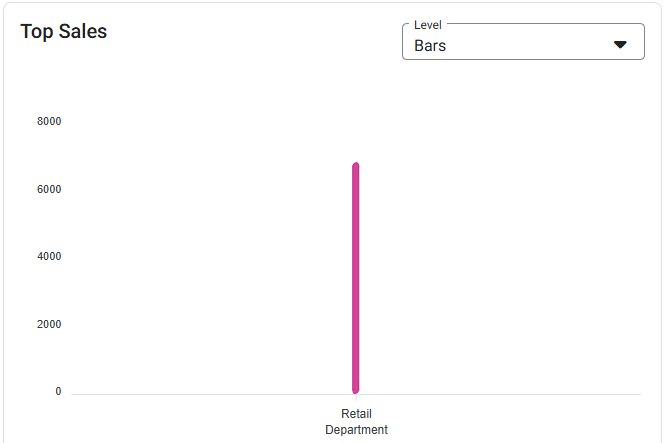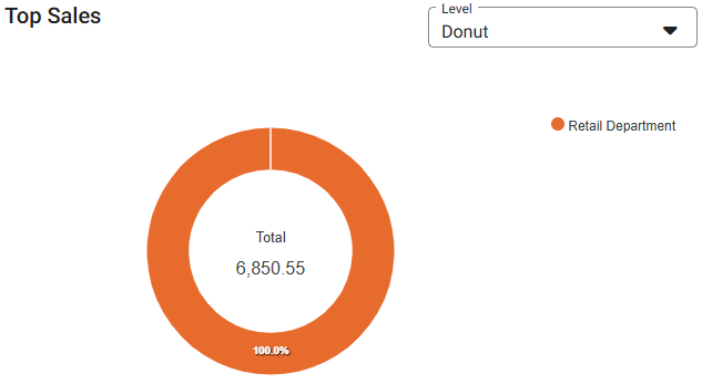 Top Sales Graph – View the Top Sales, broken down by Department. You can use the Level dropdown to view it in different forms: