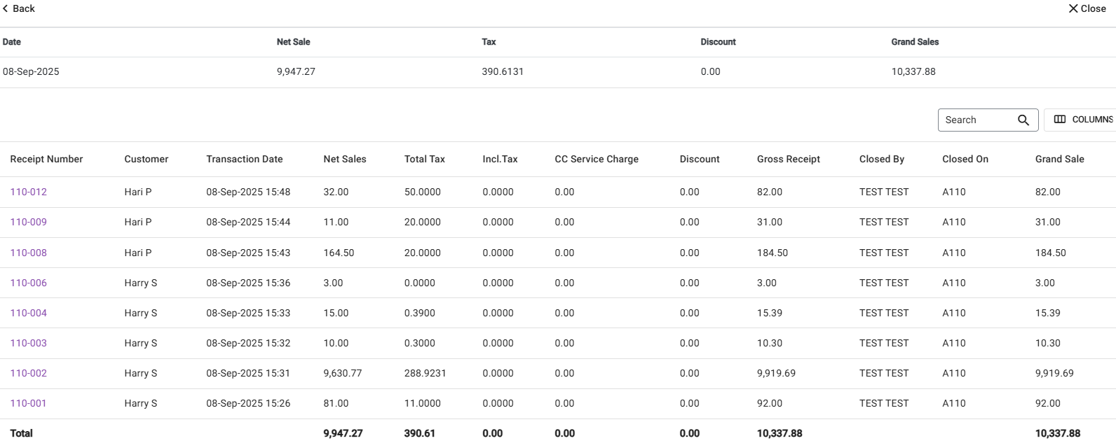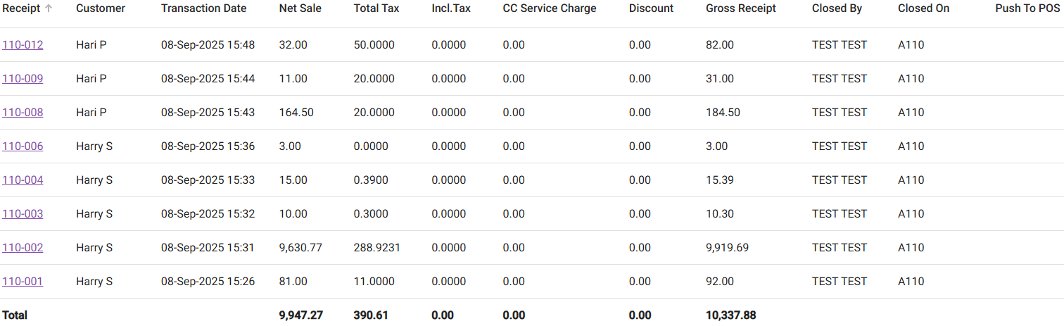 - Closed On – The Node where the Receipt was closed.