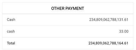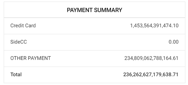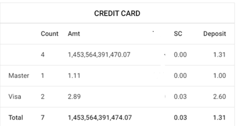 - Other Payment – Displays remaining transaction payments other than Credit Card.