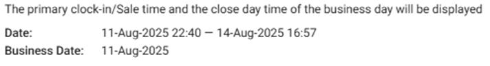 - Summary – Includes values for Over Shortage, Cover, Paid In, Paid Out, Tip Total, Cash Drop, Cash Expected, Loyalty, Opening Balance, COGS, and Factor4 Sold Amount.