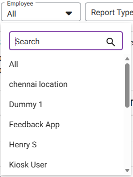 - Employee– View all Employees created in User Management (sorted alphabetically), and select an Employee from the dropdown.