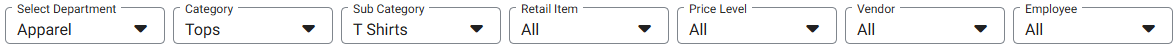 - Select a Department, then the subsequent Category, Sub Category, Retail Item, Price Level, Vendor and Employee.