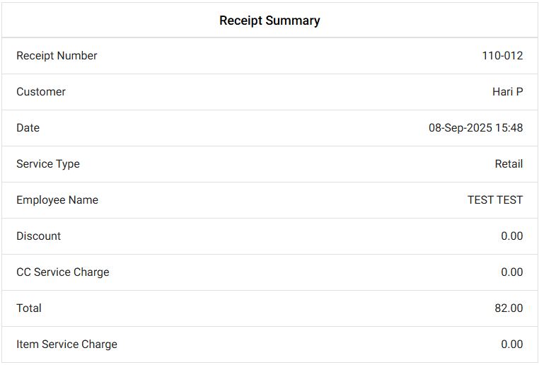 Receipt Summary – Displays an overview of the Receipt for the transaction.