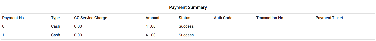 - Payment Summary – Displays a summary for Credit Card, SideCC and Other Payments (all 3 by default) along with the Total.