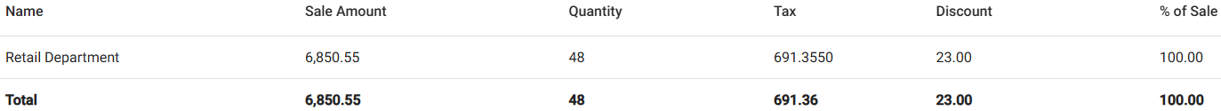 Discount – Any amount in Discount applied to the Department's sales.