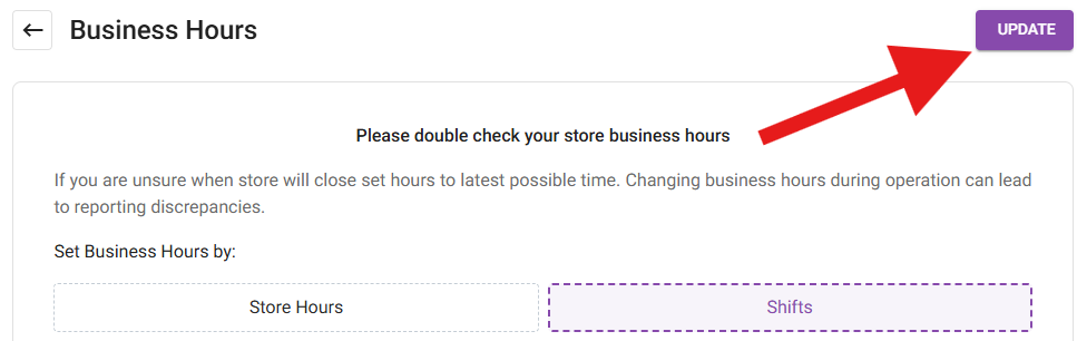 When ready to apply the Store Hours and toggle settings, click Update at the upper-right.
