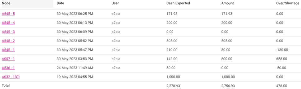 Over/Shortage: The difference between the Cash Expected and the Amount.