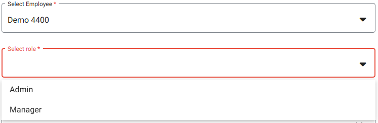 Select the Role (dropdown options are based on the Roles available to the selected Employee).