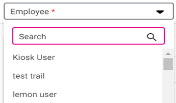 If no Employee was selected, the message 'No results match' appears in the dropdown.