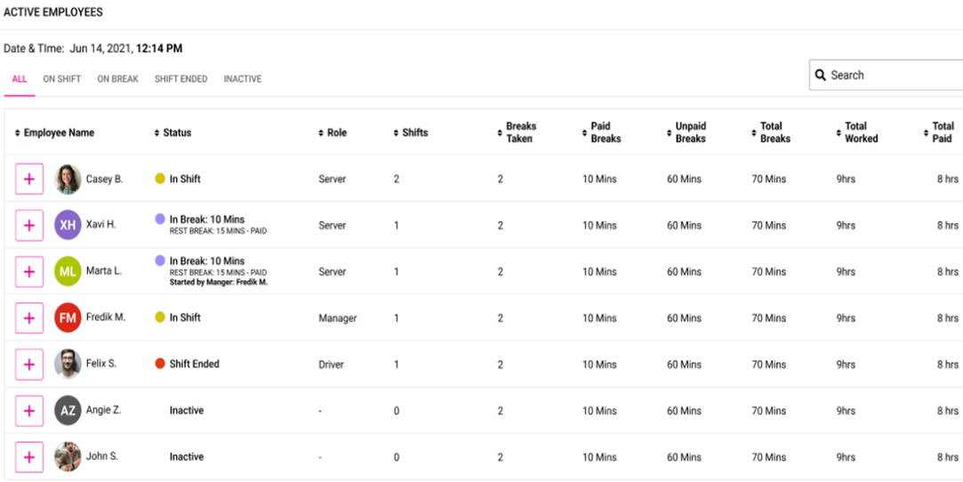 Below the employee, all the breaks for that shift will be displayed such as and this will be populated based on the BO configuration.