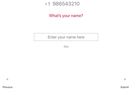 Previous can be pressed to revert to the Phone Number screen to enter a different Number.