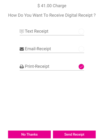 If the user changes their mind and wants to switch to a different receipt option, they select the Back button.