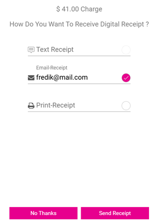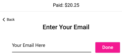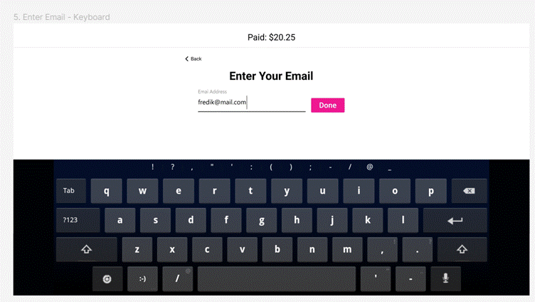 The Customer enters their Email Address for the receipt generation, then presses Done.