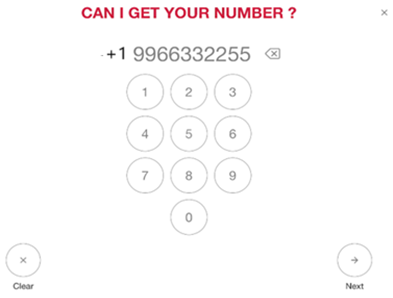 Simultaneously on CDS, a screen to request the Customer's Phone Number will appear. The Customer enters their Phone Number (mandatory), then presses Next.