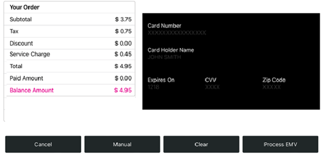 Once the payment type is submitted, the insert/swipe screen will be displayed in CDS for PAX device.For external CDS, only Dark Theme will be available.