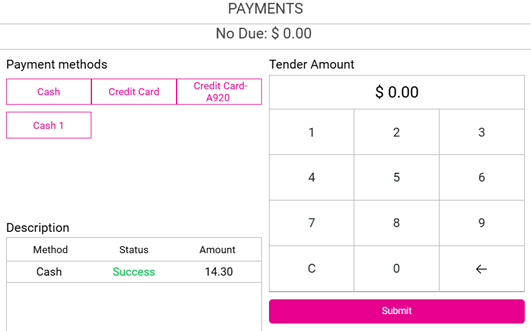 The customer swipes/inserts/taps the card in the Card Reader, then payment is made and the payment will be reflected as the Paid Amount in CDS.