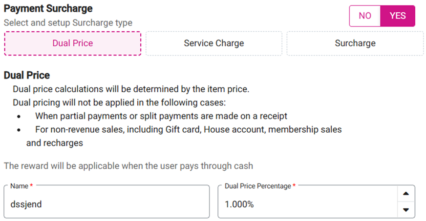 POS: Payment Surcharge - Dual Price
