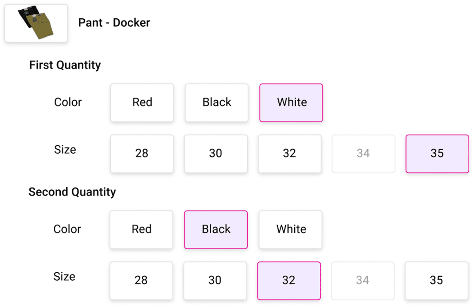 Selected attributes should be highlighted and if user want to edit the selected variant its user has to again click and user can change the necessary sub attributes.