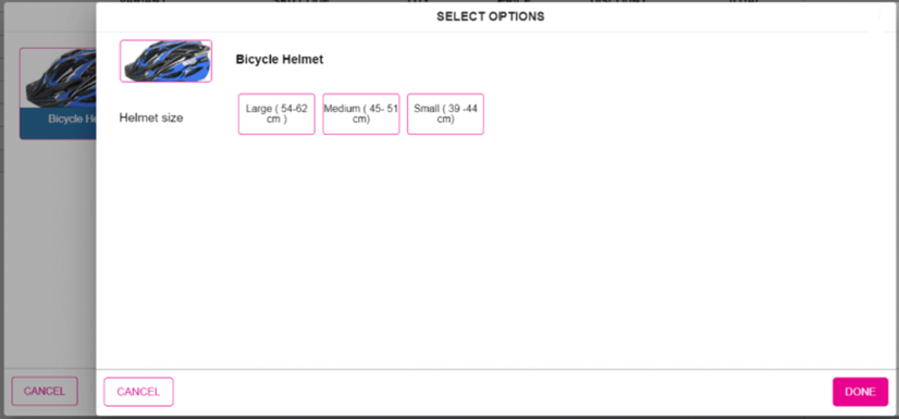 When scanning the barcode of the item on the Order screen, a pop-up with the Parent and Child items appears.