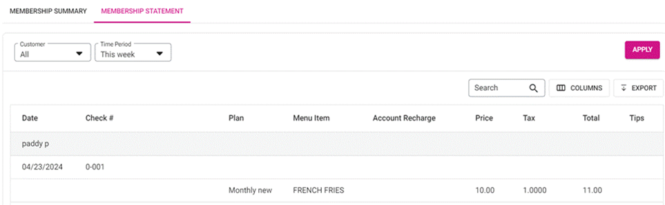 Reminder: Once created, only the Recharge field of a Customer's Membership can be edited.
