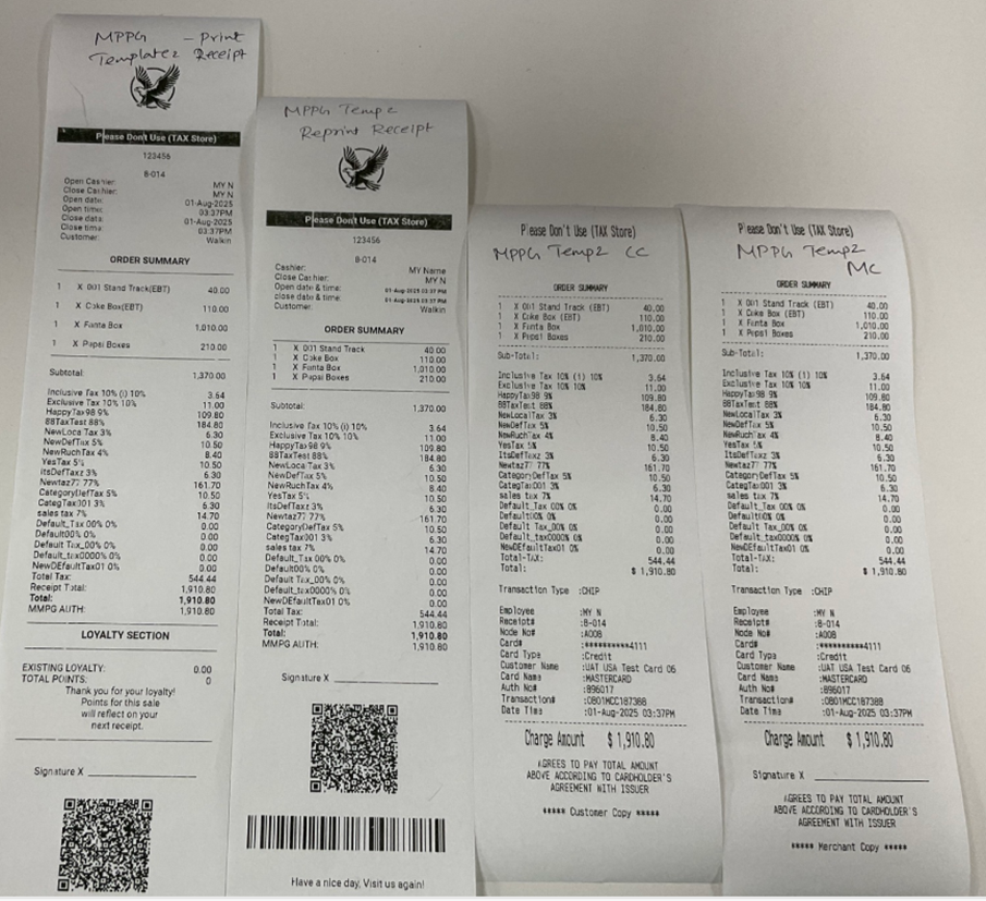 The below Receipts are supported for Star and Epson Printers and for both Text and Image.