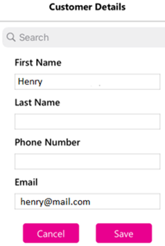 Attach a customer to the Order. A Search bar is available to search customer.