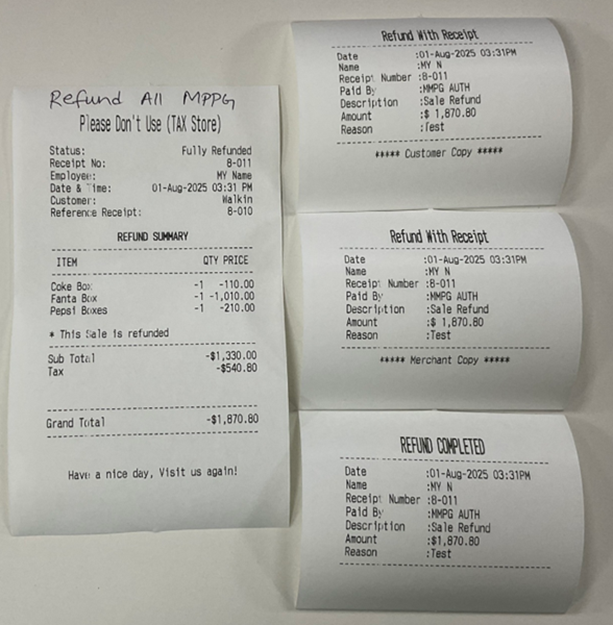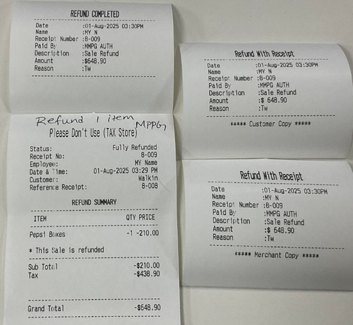 If a Refund has already been issued, the message 'Receipt is already refunded’ appears.
