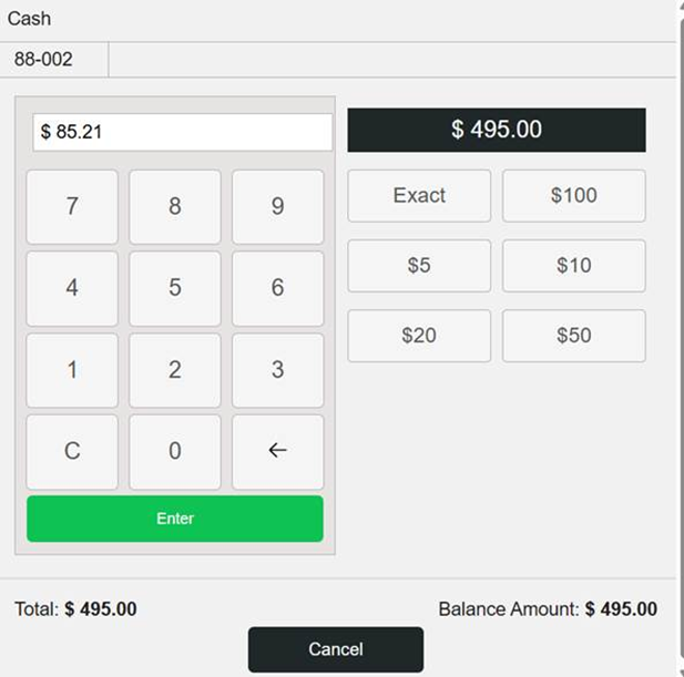 For an Exchange scenario: when choosing multicurrency, the Cash pop-up will appear. You can pay only the exact amount on the Receipt.