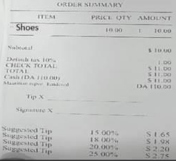 Front End Receipt