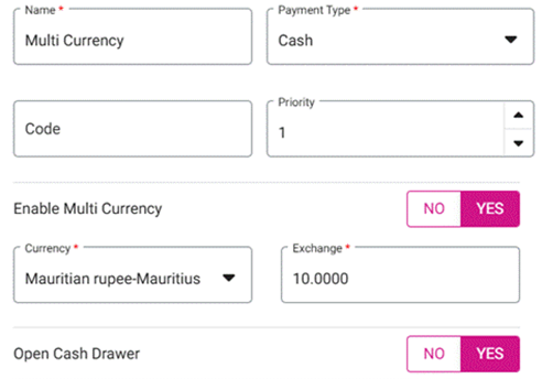 Multi Currency will be one of the Payment Methods to compete the Sale.