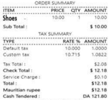 The Multi Currency name should be shown in the receipt above the Cash tendered field. (Mauritian rupee $12.18