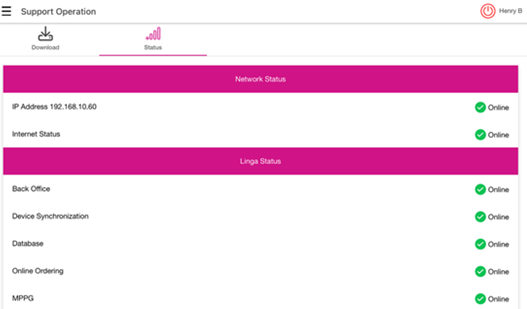 - Displays the connectivity of the POS based on its IP Address [with number] and Internet Status.