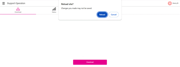 If you click the Download button, the 'Reload site?' pop-up appears which indicates that there are unsaved changes to the POS, which could be lost if the site is reloaded. You are provided with two options to proceed: