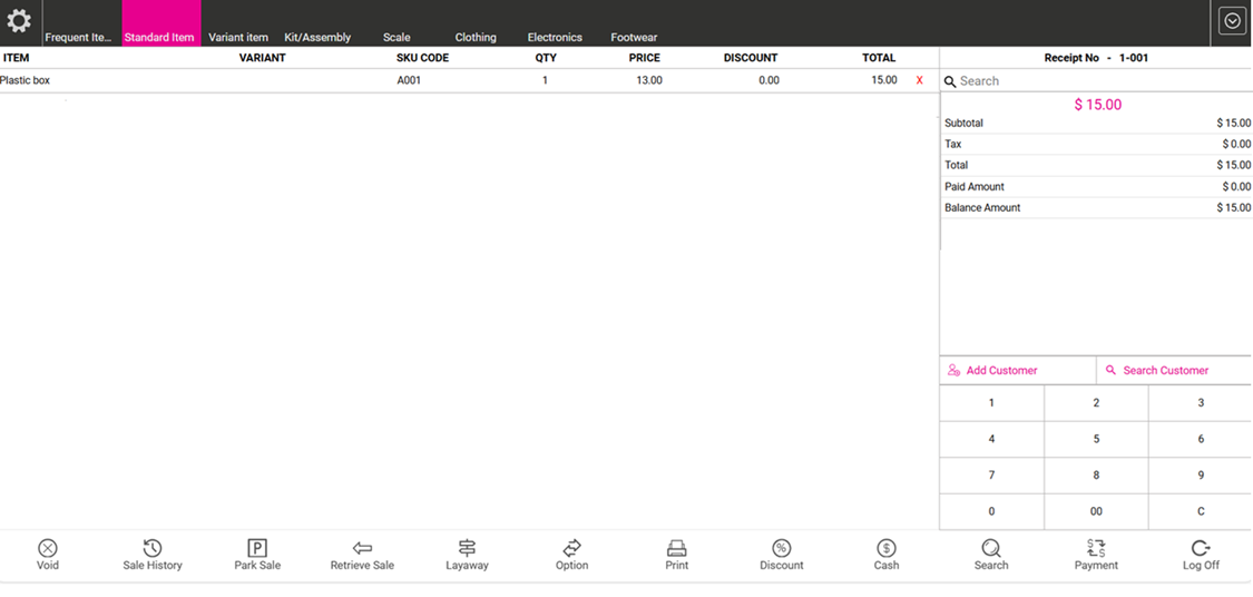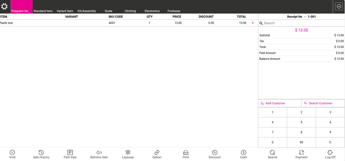 When the Item is selected from the Category, the price configured for the Retail Item will appear.
