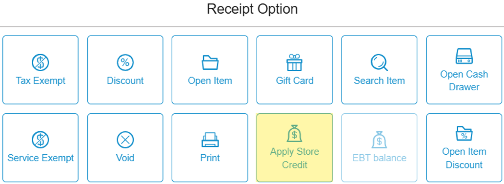 On the Receipt Options screen, select Apply Store Credit.