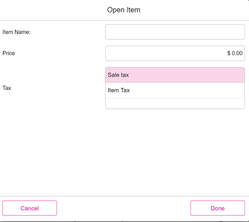 Open Item gives you the ability to manually input the price of an item at the time of sale.