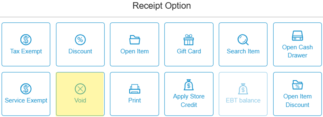Select Item to remove from the Receipt, then the Option button at the bottom.