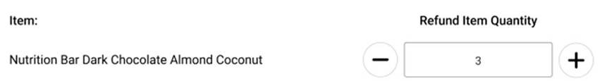 Example: Nutrition Bar Dark Chocolate Almond Coconut with quantity of 3. Increase or decrease the quantity of item by using plus (+) or minus (-) option.