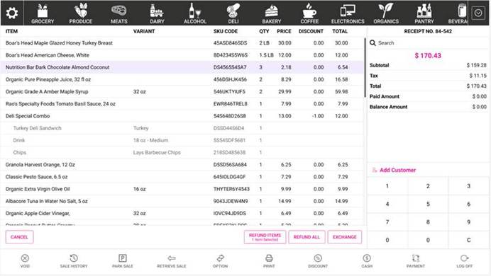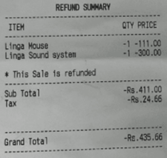 To refund particular items on a Receipt, user can use REFUND ITEMS option.