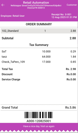 Re-Print Receipt - Print Receipt in the sale history screen. You can Print Receipts by click Print Receipt option. The Receipt will be printed in the assigned printer.